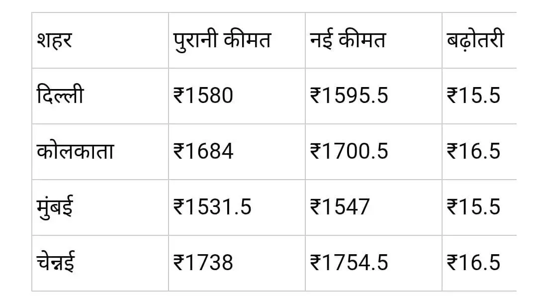 दिल्ली और मुंबई में 19 वाले सिलेंडर में 15.5 रुपये की बढ़ोतरी हुई है।;