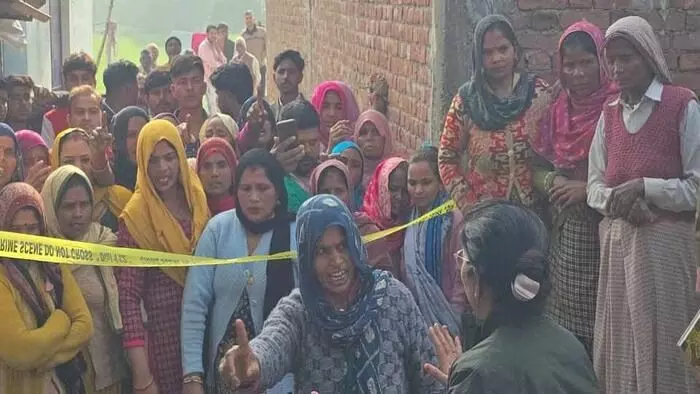 आक्रोशित ग्रामीण आरोपी को पुलिस के हवाले करने की मांग कर रहे हैं, जिससे माहौल तनावपूर्ण हो गया है।