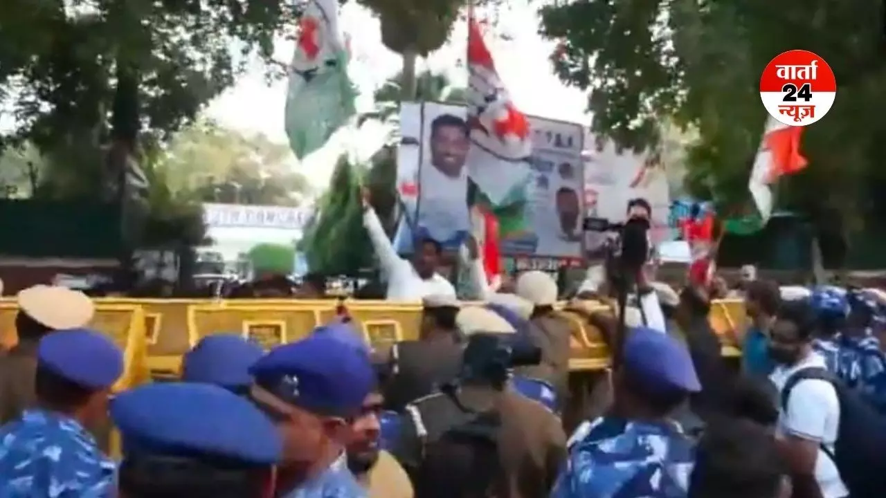 IYC मुख्यालय के बाहर कांग्रेस कार्यकर्ताओं ने उदय भानु चिब की गिरफ्तारी के विरोध में किया प्रोटेस्ट, पुलिस से हुई नोकझोंक