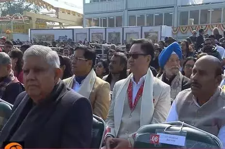 परेड के दौरान पूर्व उपराष्ट्रपति धनखड़ को केंद्रीय मंत्री किरेन रिजिजू के पास अगली कतार में बैठे देखा गया। इस्तीफे के बाद से वे सार्वजनिक कार्यक्रमों से काफी दूर थे और हाल ही में स्वास्थ्य बिगड़ने के कारण उन्हें AIIMS में भी भर्ती कराया गया था।