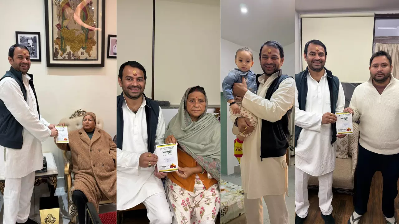 घर आए लालू के बड़े लाल! मां- बाप और भाई तेजस्वी से मिल कर दिया दही-चूड़ा भोज का आमंत्रण