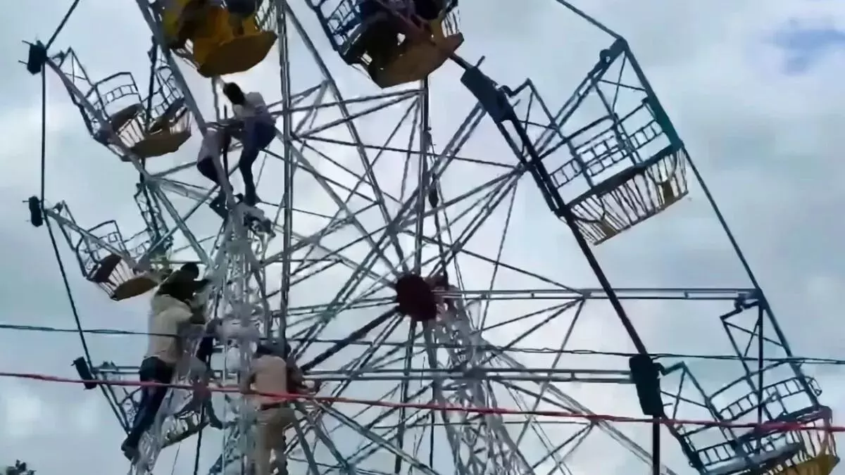 मेले में लगा झूला अचानक टूट जाने से वहां मौजूद लोगों में अफरातफरी मच गई
