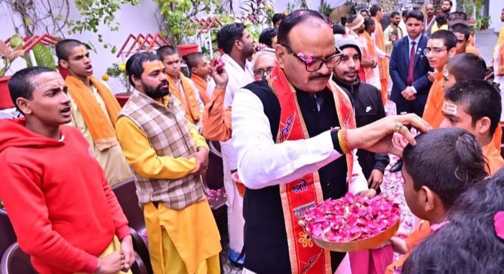 डिप्टी सीएम ने अपनी पत्नी नम्रता पाठक के साथ मिलकर करीब 100-101 बटुक ब्राह्मणों का तिलक लगाकर स्वागत किया और उन्हें अंगवस्त्र भेंट किए।