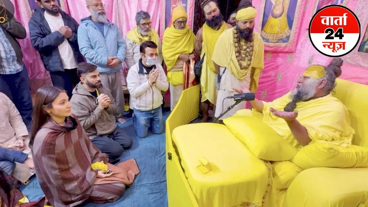 वृंदावन। विराट कोहली और अनुष्का शर्मा फिर से प्रेमानंद जी महाराज से मिलने पहुंचे हैं। अनुष्का और विराट कई बार प्रेमानंद जी के दर्शन के लिए आते रहते हैं, दोनों की मुलाकात की वीडियो सोशल मीडिया पर तेजी से वायरल हो रही है। इस दौरान दोनों ने प्रेमानंद जी से भगवान से जुड़ाव के बारे में बातें सुनीं। इस दौरान दोनों ही बेहद सादगी के साथ दिखे हैं।