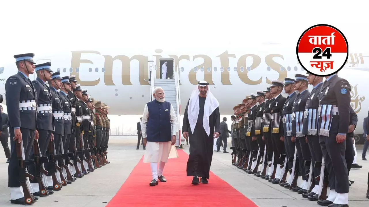 UAE राष्ट्रपति शेख मोहम्मद बिन जायद अल नहयान पहुंचे दिल्ली, पीएम मोदी ने पालम एयरपोर्ट पर किया स्वागत