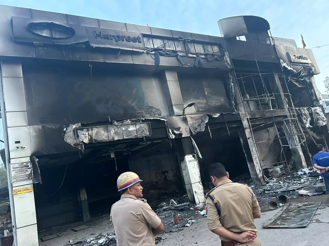 कार शोरूम के वर्कशॉप में लगी भीषण आग, दमकलकर्मियों ने बुझाया