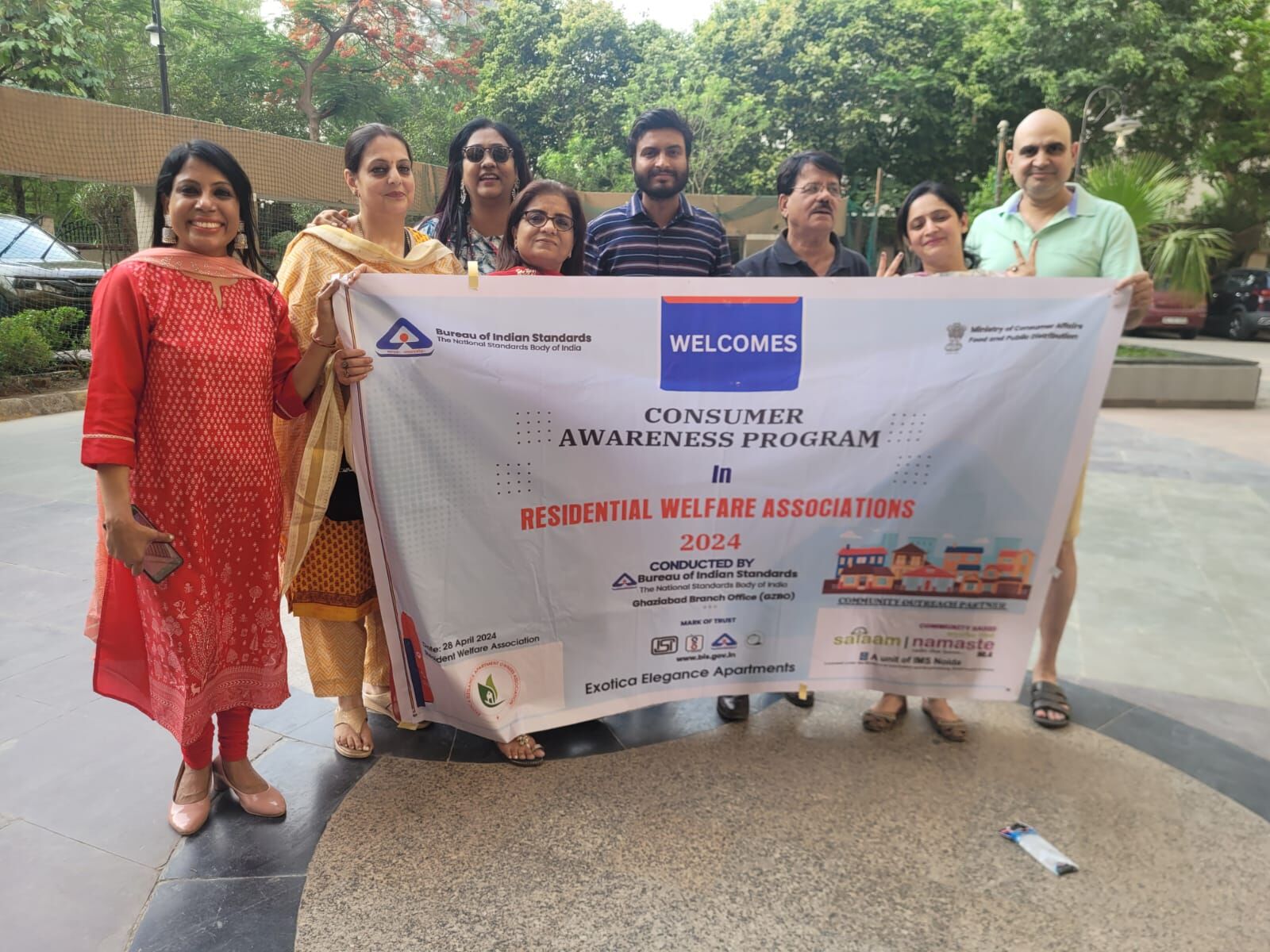 गाजियाबाद। भारतीय मानक ब्यूरो, गाजियाबाद (उपभोक्ता मामले मंत्रालय, भारत सरकार के तहत) ने सलाम नमस्ते सामुदायिक रेडियो के सहयोग से आवासीय कल्याण संघ एक्सोटिका एलिगेंस अपार्टमेंट में एक उपभोक्ता जागरूकता कार्यशाला का आयोजन किया। कार्यक्रम की शुरुआत एक्सोटिका एलिगेंस अपार्टमेंट्स आरडब्ल्यूए के अध्यक्ष शशि भूषण बजाज और सलाम नमस्ते कम्युनिटी रेडियो की स्टेशनहेड वर्षा छाबरिया द्वारा बीआईएस गाजियाबाद के स्टैंडर्ड प्रमोशन कंसल्टेंट प्रियांशु जी के स्वागत से हुई। इस कार्यक्रम में सभी ने एक सुर में गाया "जागो ग्राहक जागो, अपने मानक को पहचानो"